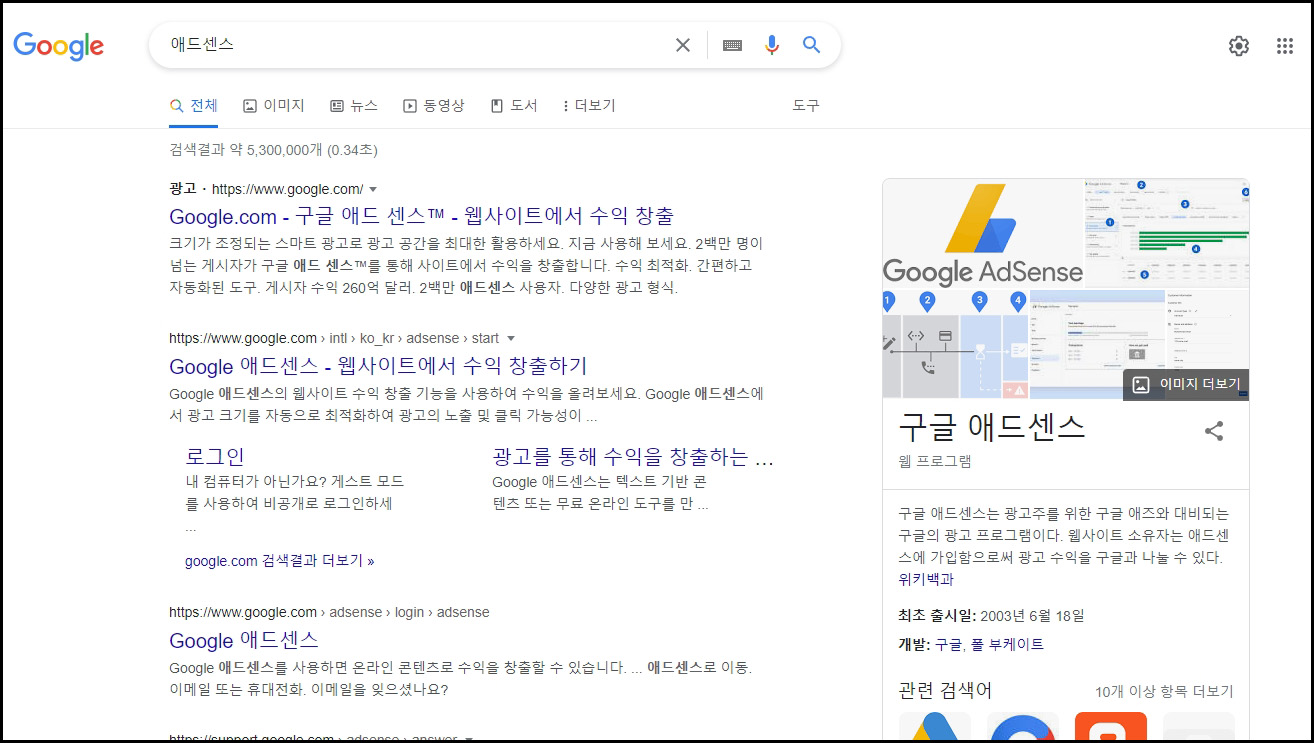 애드센스를 검색하면 사이트가 뜨는데 신청을 할 땐 구글의 브라우저인 크롬을 사용하시길 바랍니다.