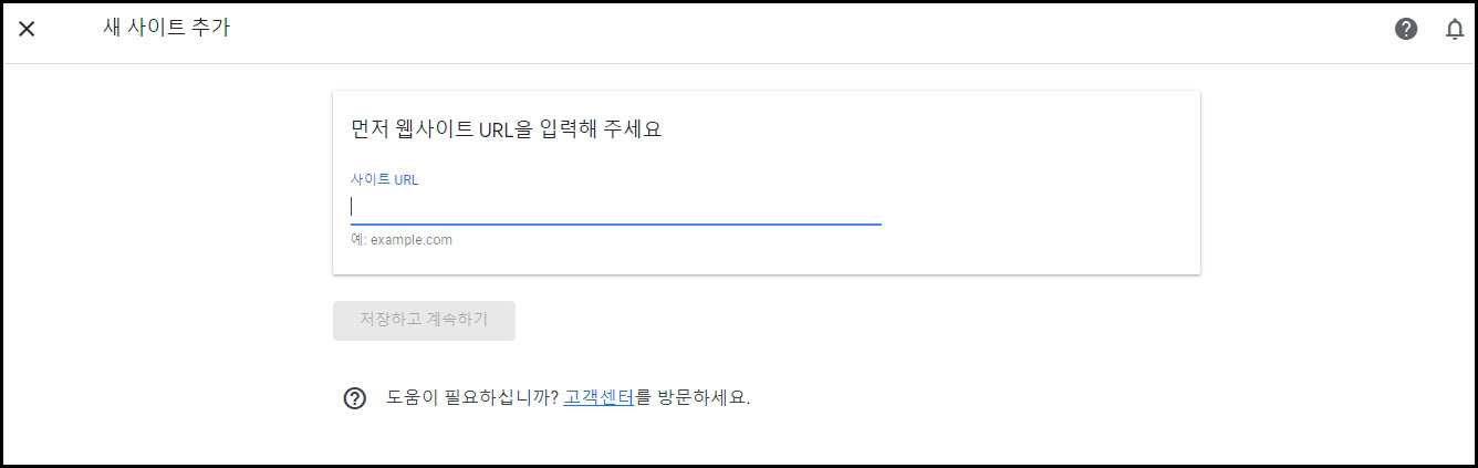 좌측 메뉴 사이트 > 사이트 추가를 클릭하고, 웹사이트 URL을 입력합니다.