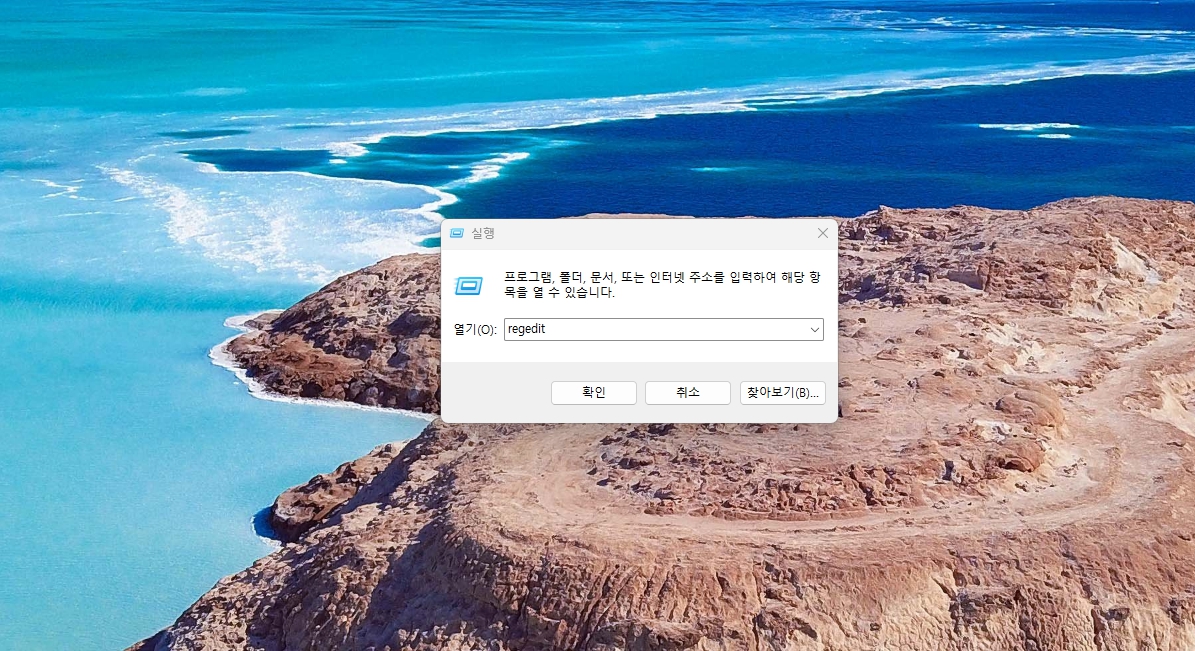 윈도우 키 + R > 'regedit' 입력