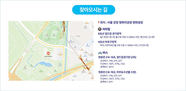 지하철: 월드컵경기장역 또는 마포구청역