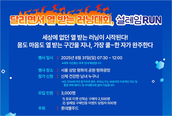 여름 더위를 시원하게 날려버릴 특별한 러닝 이벤트가 찾아옵니다. 롯데웰푸드의 인기 아이스크림 브랜드 '설레임'과 함께하는 설레임런이 8월 31일 일요일에 개최됩니다.