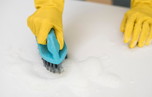 3 강모 브러시로 강하게 문지르기강모 브러시로 강하게 문지르기