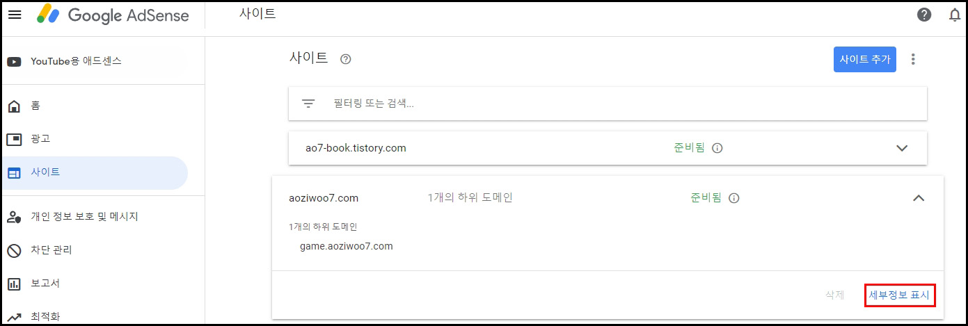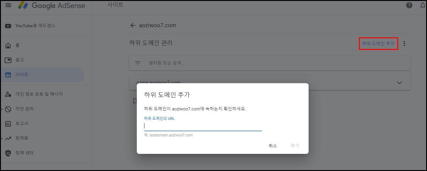 하위 도메인을 생성 했다면 구글 애드센스에 등록을 해주시면 됩니다.