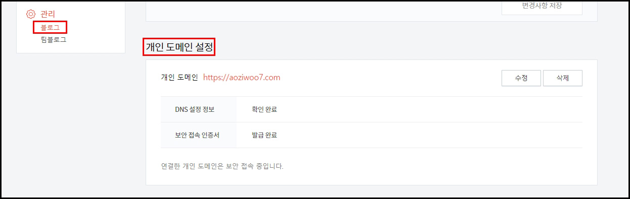 (해당 부분은 처음 도메인을 등록했을 때와 같습니다. - 추가한 하위 도메인 주소가 들어가게 됩니다.)