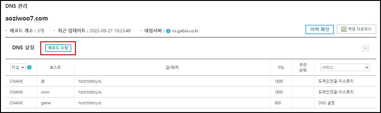 티스토리 개인 도메인 설정.