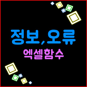 TRUE를 출력=ISBLANK(A2) FALSE ISERR =ISERR(셀) 셀 값이 #N/A 를 제외한 오류값을 참조 =ISERR(A6) TRUE ISERROR =ISERROR(셀) 셀 값이 오류이면