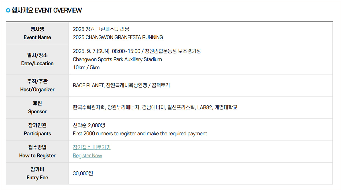 🏁 대회 기본 정보📅 대회명 및 일시대회명: 창원 그란페스타 러닝