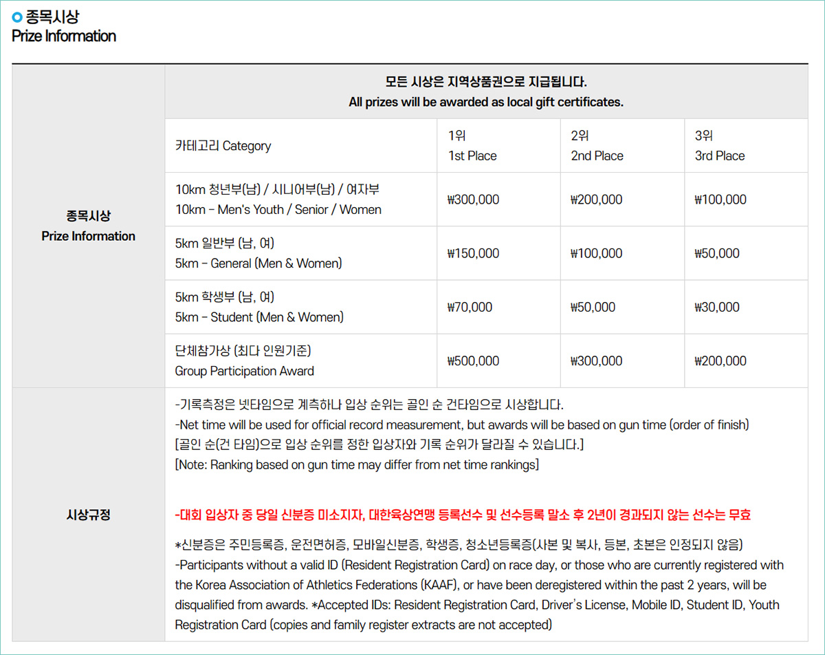 🏆 시상 및 기념품⏱️ 시상 방식측정: 넷타임으로 기본 측정