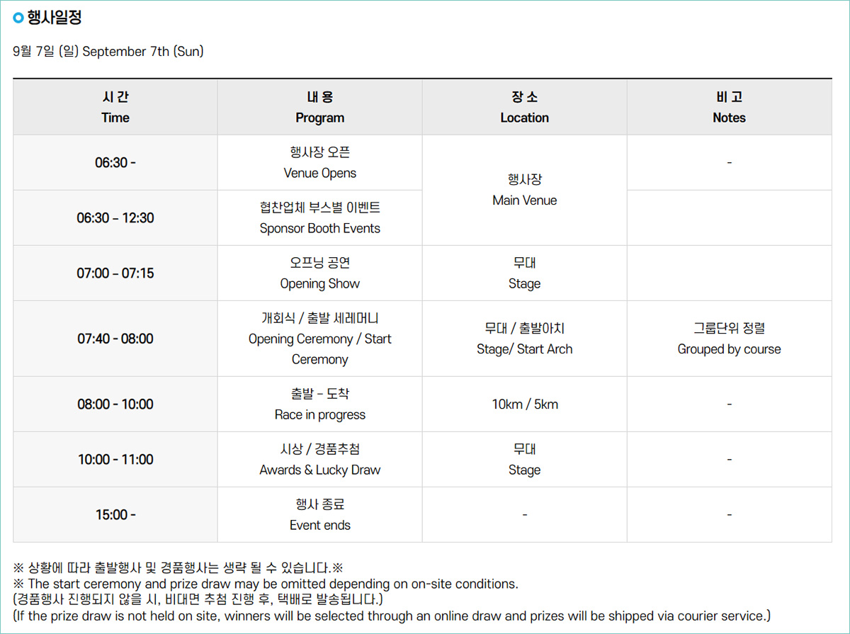 ⏰ 행사 일정표🌅 당일 타임라인06:30 - 행사장 오픈, 협찬 업체 부스 이벤트 시작