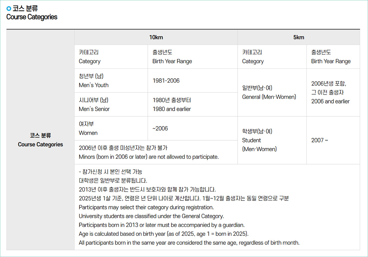 🏃♀️ 참가 종목 및 부문🏃 10K 부문• 청년부 (남자)