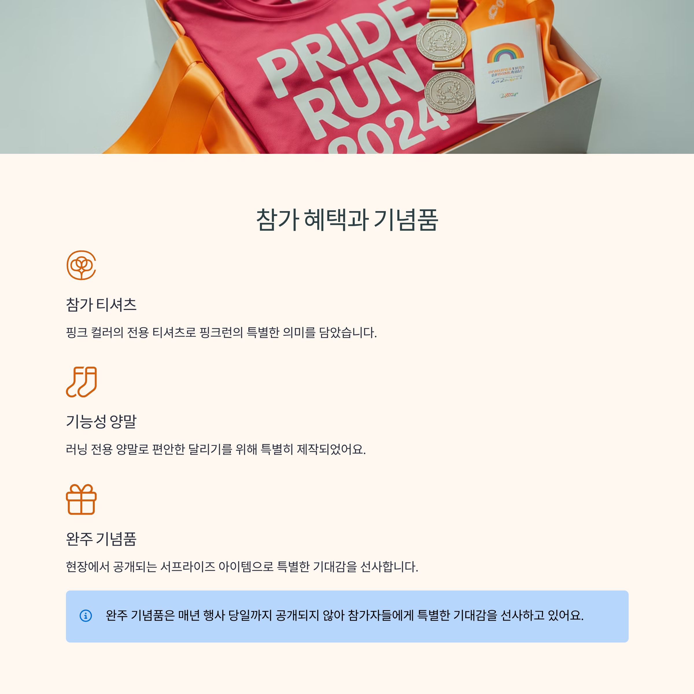 • 완주 기념품: 현장에서 공개되는 서프라이즈 아이템