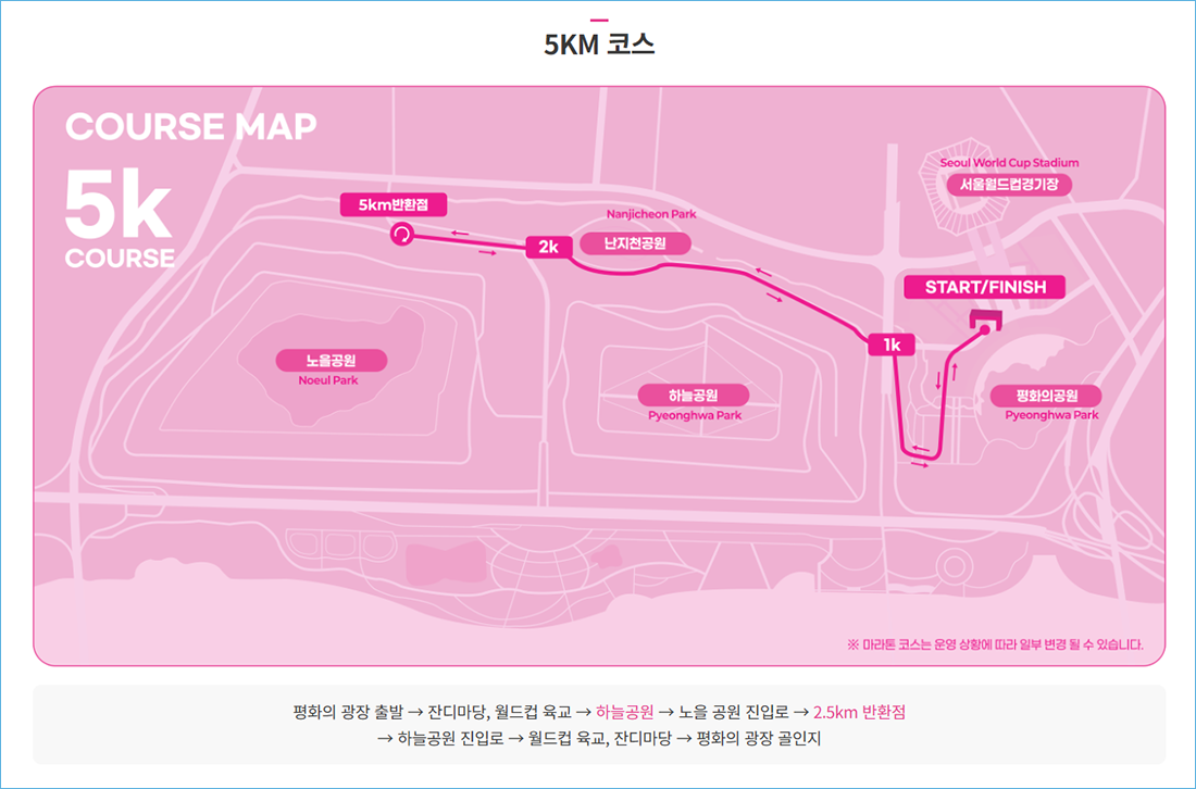 • 여유로운 일정: 5,000명이 참가하는 대규모 행사이므로 충분한 시간 여유를 두고 오세요💖 함께 달리며 만드는 희망
