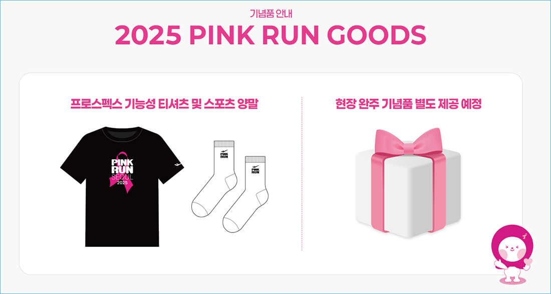 모든 참가자에게는 핑크런만의 특별한 기념품들이 제공됩니다.