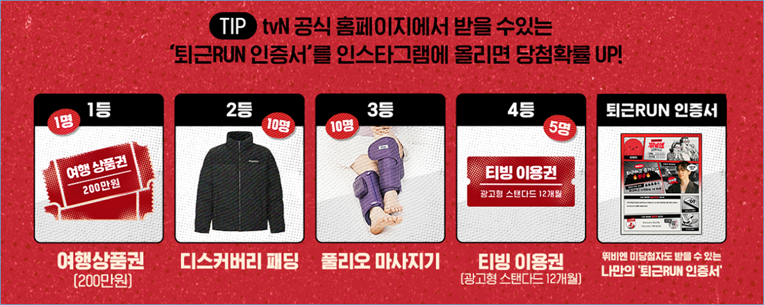 퇴근 후 집에서 tvN 드라마를 보거나 가벼운 러닝으로 스트레스를 해소하면서, 동시에 실용적인 기념품까지 받을 수 있다면 어떨까요?