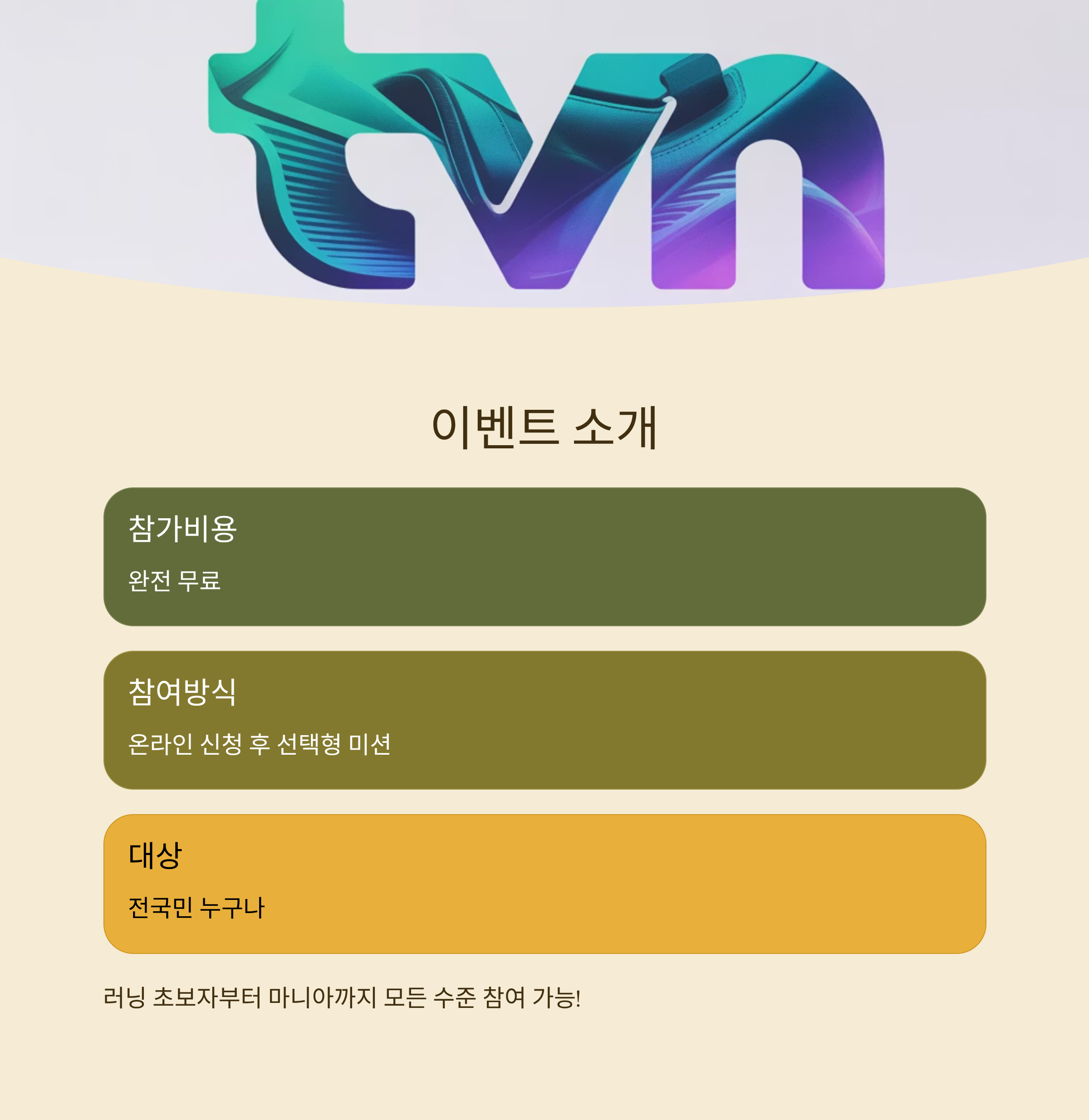📢 이벤트는 러닝 초보자부터 마니아까지 모든 수준의 참가자를 고려해 설계되어, 평소 운동을 자주 하지 않는 분들도 부담 없이 도전할 수 있도록 구성되어 있습니다.참가신청 방법 및 일정