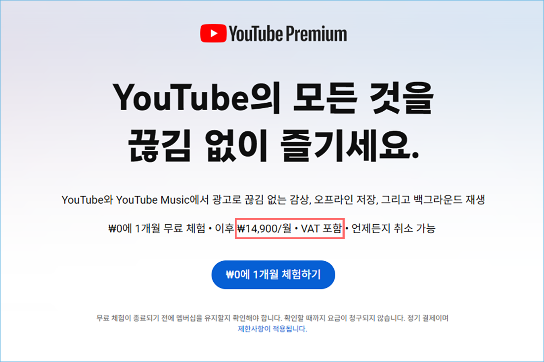 유튜브 프리미엄이 필요하지만 월 14,900원이 부담스러우신가요?