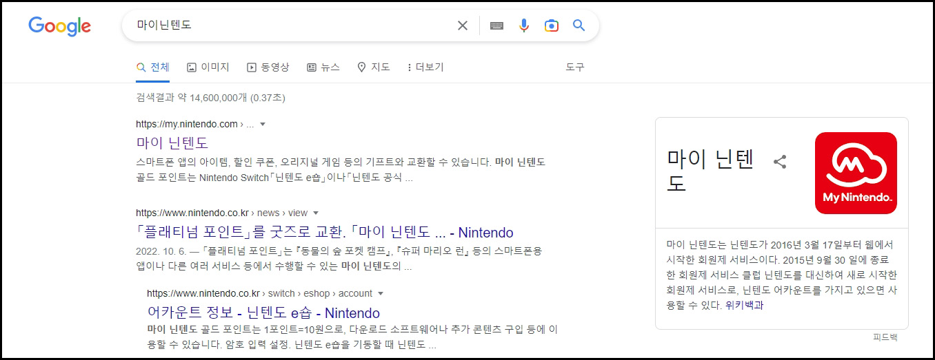 닌텐도 사이트가 아닌 '마이닌텐도'로 검색하셔야 합니다.