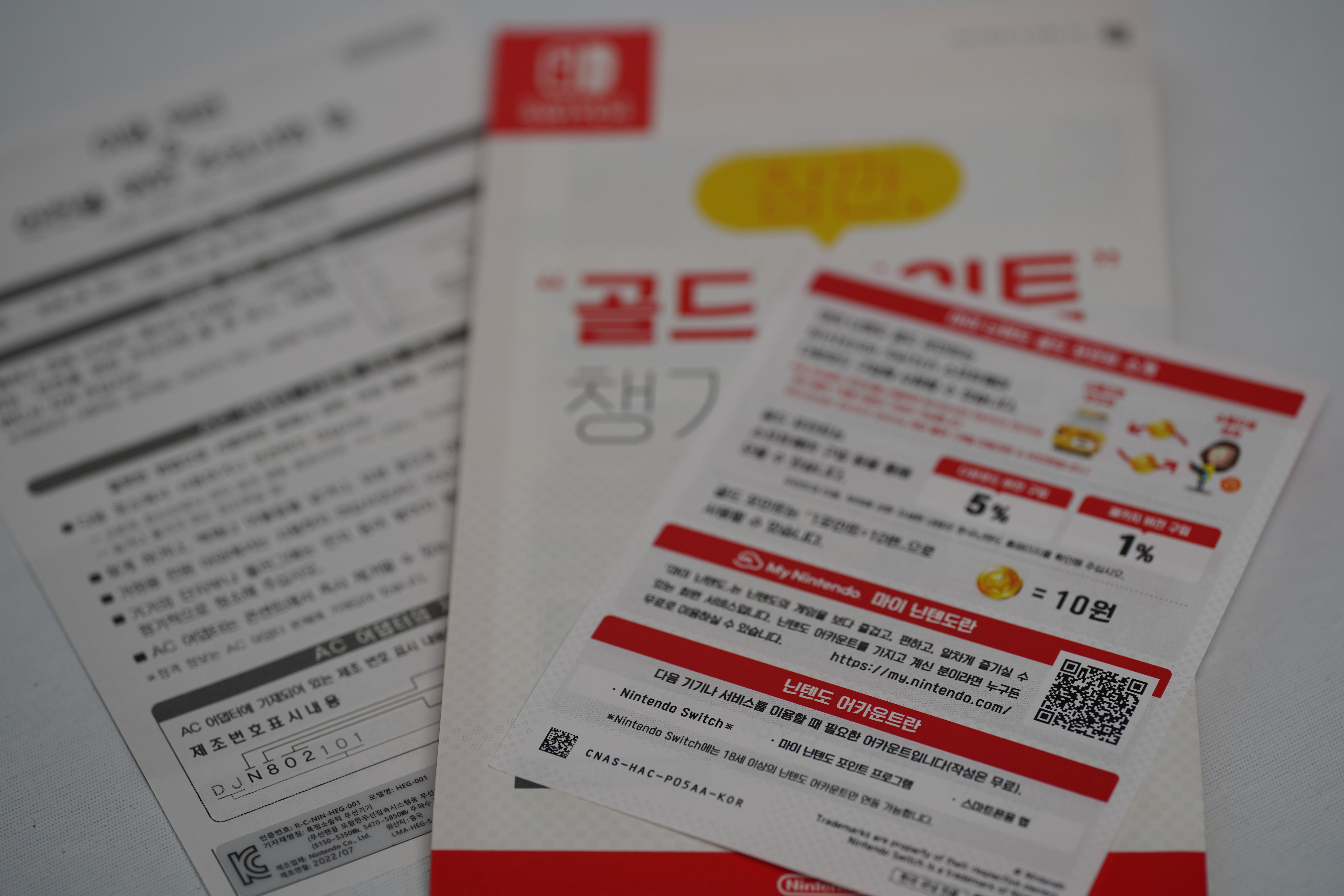닌텐도 스위치를 구입하면 패키지 안에 골드 500 포인트를 적립할 수 있는 번호가 적힌 종이가 들어 있는데, X10을 해서 5,000원의 가치를 가집니다. 게임기를 구입했는데 고작 5천원이라니 하는 생각도 들지만, 어찌 되었든 포인트 번호만 입력하면 5,000원의 가치를 가지는 닌텐도 골드를 적립할 수 있습니다.