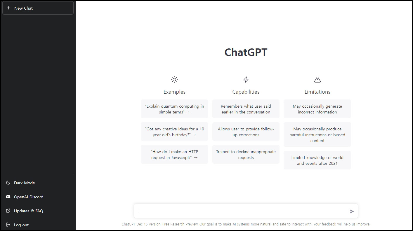 21년도까지의 학습된 데이터를 토대로 답변을 하고 있고, 대부분 잘 알아듣고 자연스러운 답변을 내놓지만, 학습된 대로 답을 하기 때문에 편향된 답변이 나오거나 가끔 엉뚱한 답을 하기도 합니다.