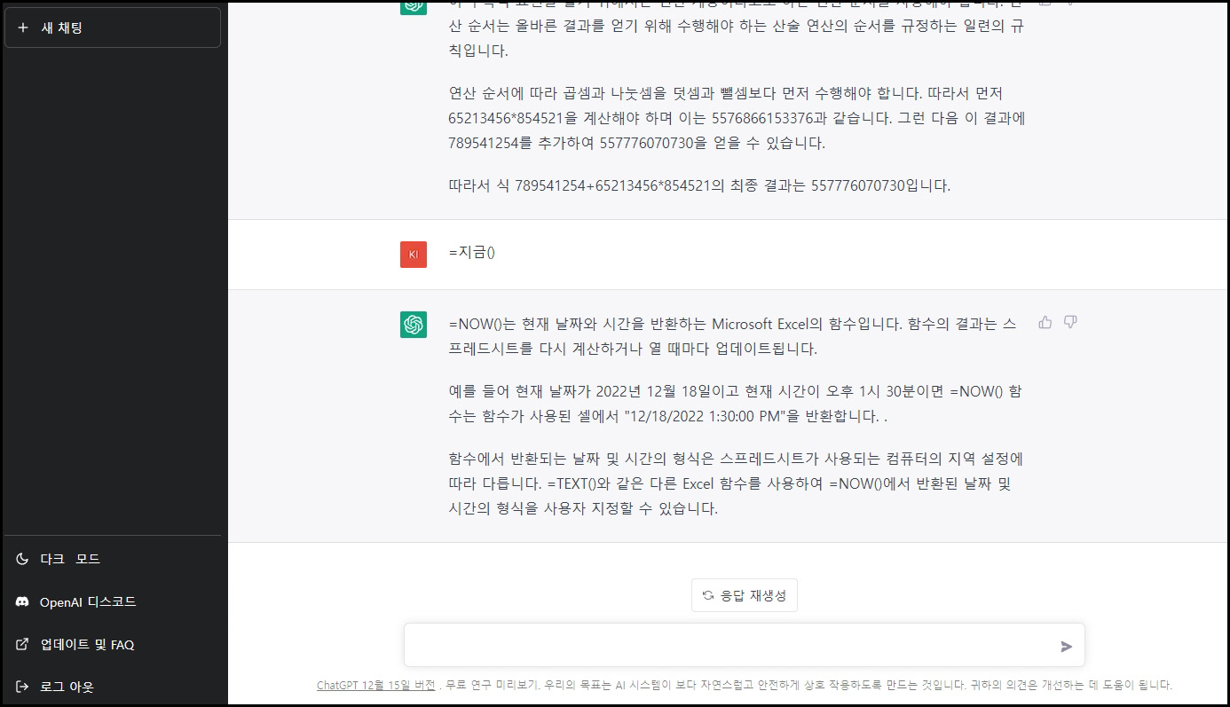 제대로 된 답변을 받기 위해서는 번역 하기 전인 기본 상태인 영어로 해놓고 한글로 질문을 하고, 다시 한글로 번역을 하여 답변을 봐야 합니다.