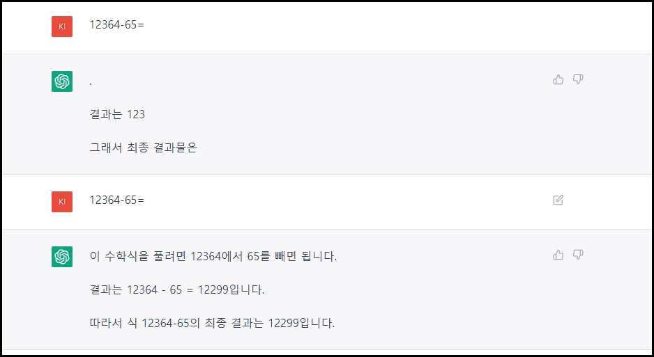 영어로 되어 있는 기본 상태에서 한글로 질문하는 것은 관계가 없지만, 크롬의 경우 한글 번역 후 질문을 하면 답변을 이상하게 합니다. 똑같은 질문을 했을 때 위 이미지와 같이 답이 다릅니다.