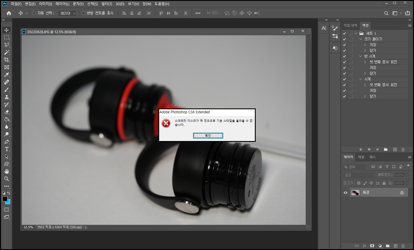 스크레치 디스크가 꽉 찼으므로 기본 스타일을 불러올 수 없습니다.
