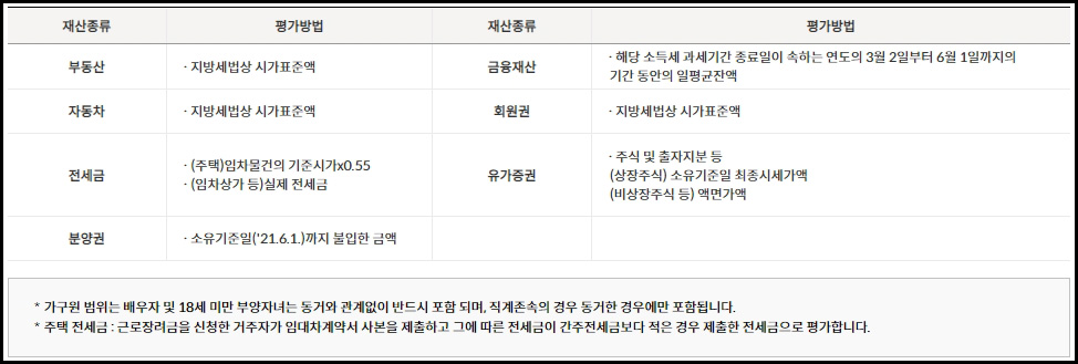 *2023년에는 재산 요건 완화에 따라 2.4억원 미만으로 바뀌게 됩니다. (2023년 신청부터 시행)