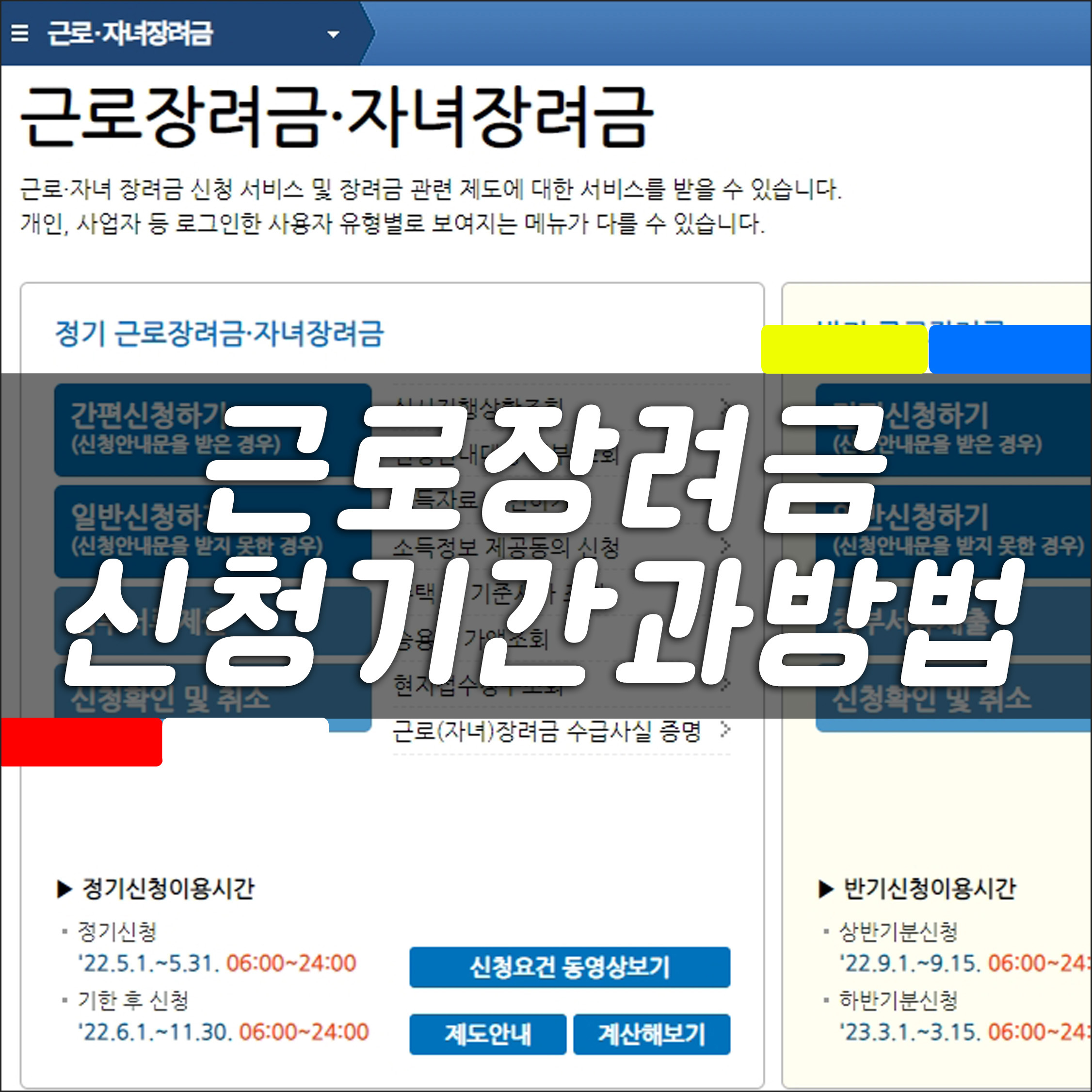 이와같이 근로장려금 반기의 경우 지급을 빨리 받을 수 있으면서 상반기와 하반기 2회의 신청 기간이 있지만, 정기 신청의 경우 5월로 신청 기간이 정해져 있으며 지급도 당해년도가 아닌 후년에 받을 수 있어 소득이 적어 힘든 시기에 빠르게 받기에 어려운 부분이 있습니다.