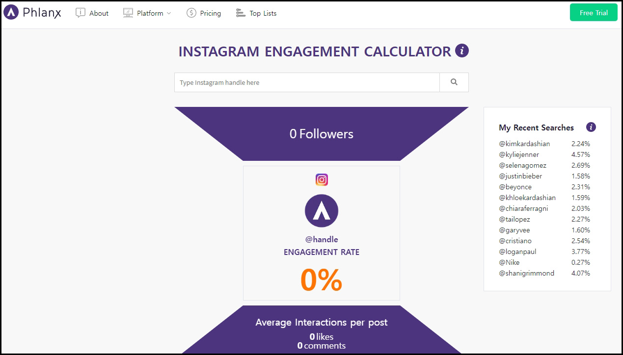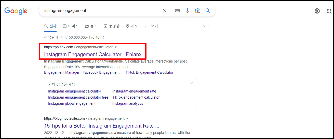 instagram engagement 검색을 통해서 참여율을 계산할 수 있는 기능을 여러 사이트에서 제공하고 있습니다. 간단하게 인스타 아이디를 넣고 클릭하는 것으로 인스타그램 인게이지먼트를 알아볼 수 있습니다.