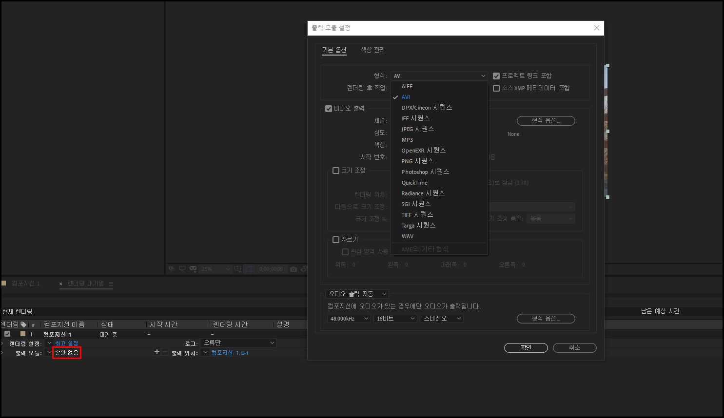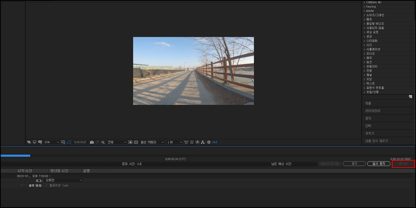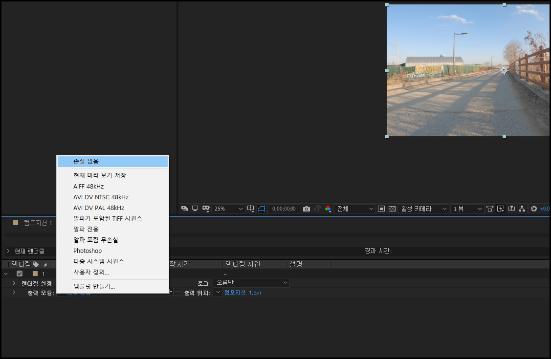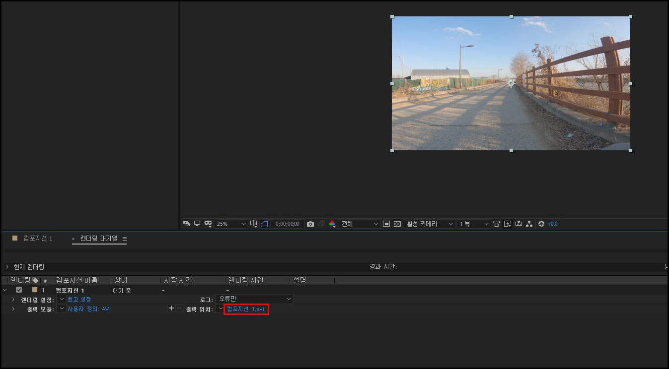 애프터이펙트 렌더링 걸기.