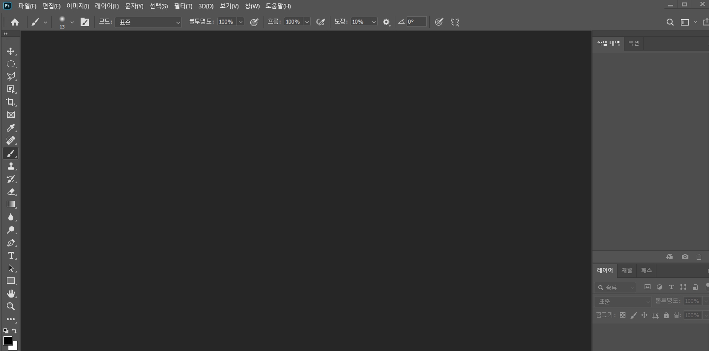 포토샵을 처음 실행하면 이런 화면이 뜹니다.