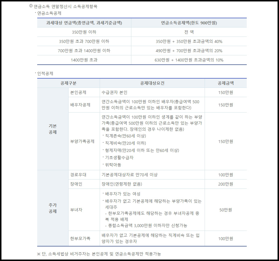 연금 소득 공제 항목.