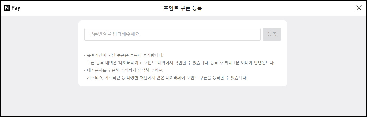기프트콘으로 네이버페이 쿠폰을 받으셨다면 위의 과정을 통해 등록하시면 되겠습니다.