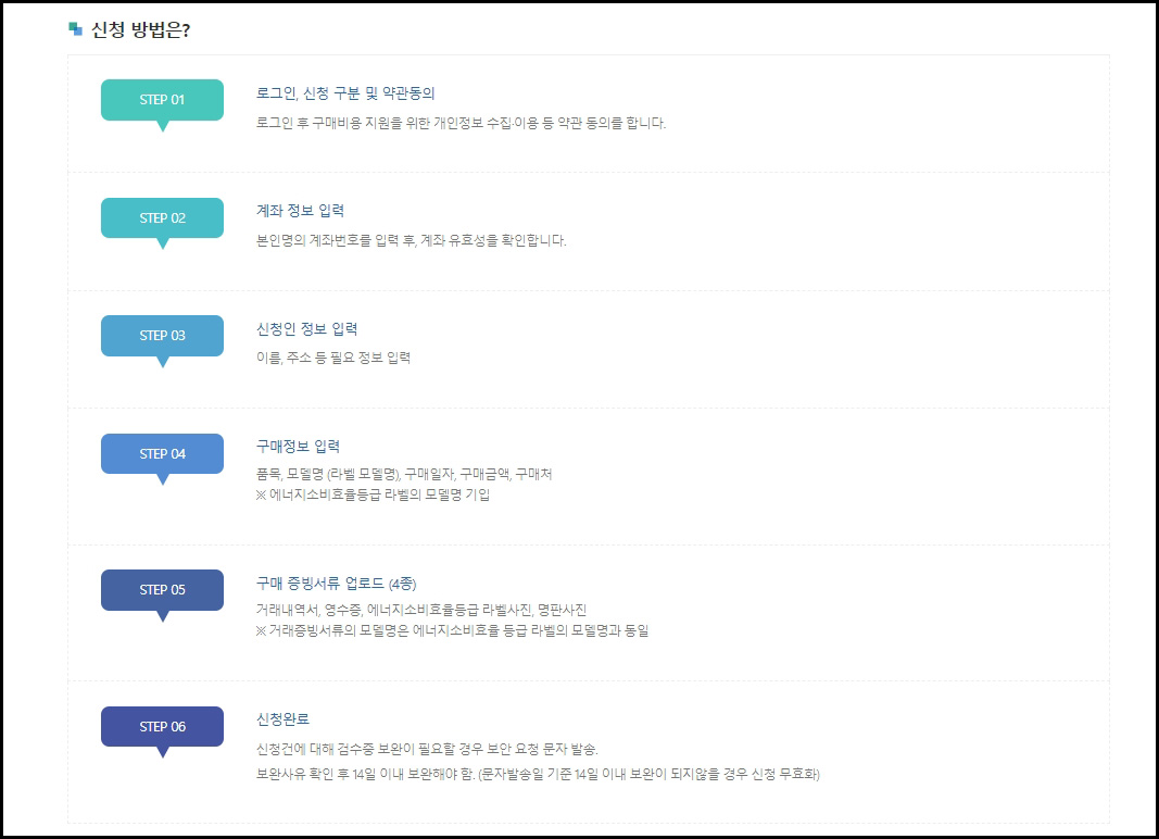 에너지소비효율등급 라벨이 붙어 있는지 해당되는 모델인지 대상자인지 잔여 예산이 충분히 남았는지 등을 꼭 살펴 보시고 신청하시길 바랍니다.