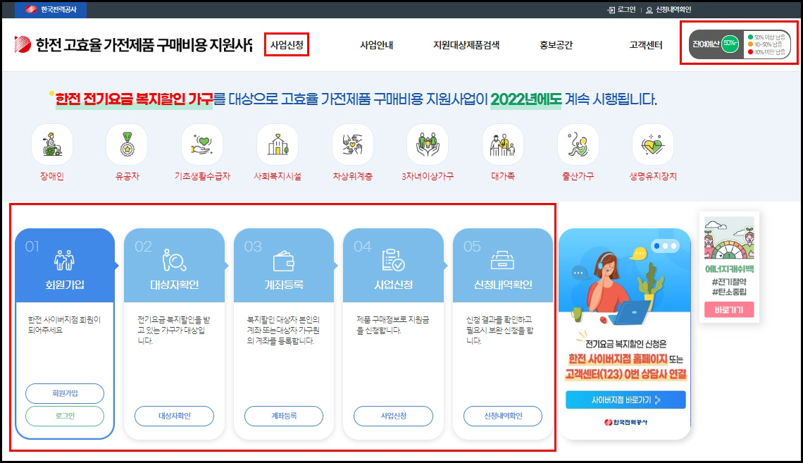 한전 고효율 가전제품 구매비용 지원사업 신청 방법.